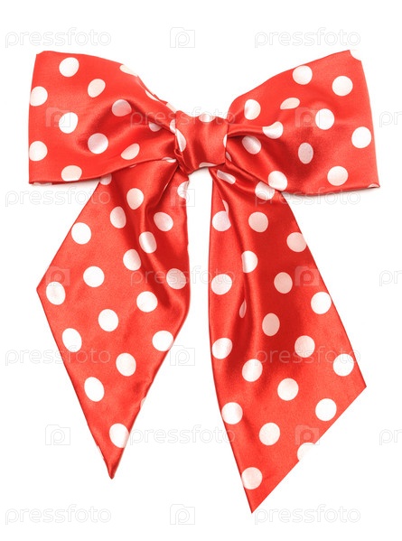 Красный шелковый бант в горох на белом фоне