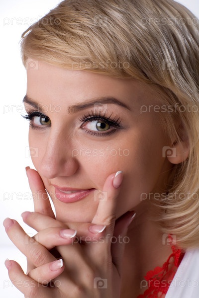 Улыбающаяся блондинка на белом фоне