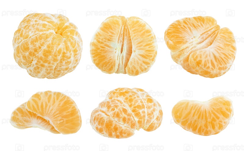 Очищенный мандарин на белом фоне