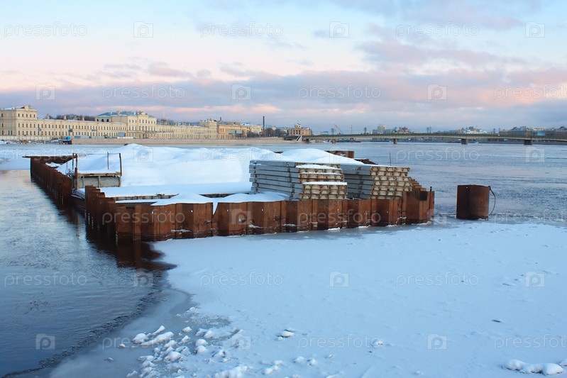 Ремонт пристани, набережная Невы, Санкт-Петербург, Россия