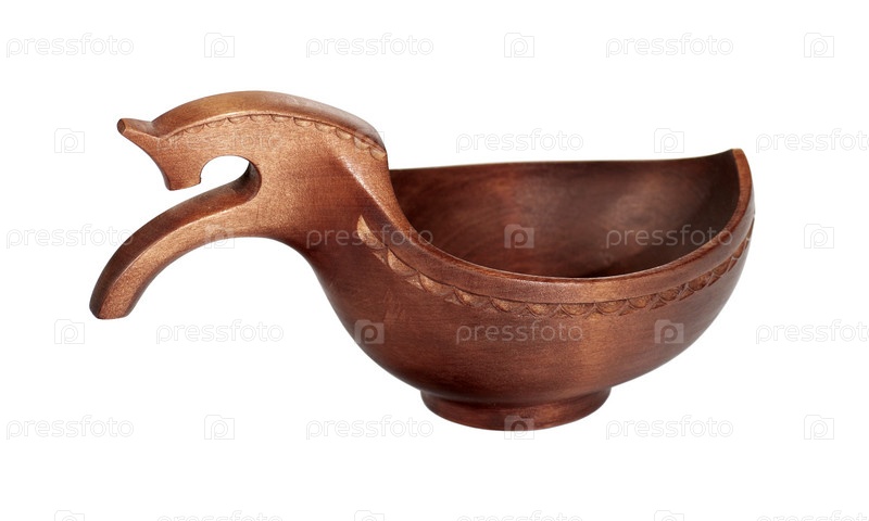 Традиционная русская деревянная чаша, изолировано на белом фоне