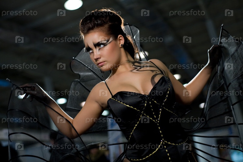 Девушка с ярким макияжем в образе кошки на темном фоне