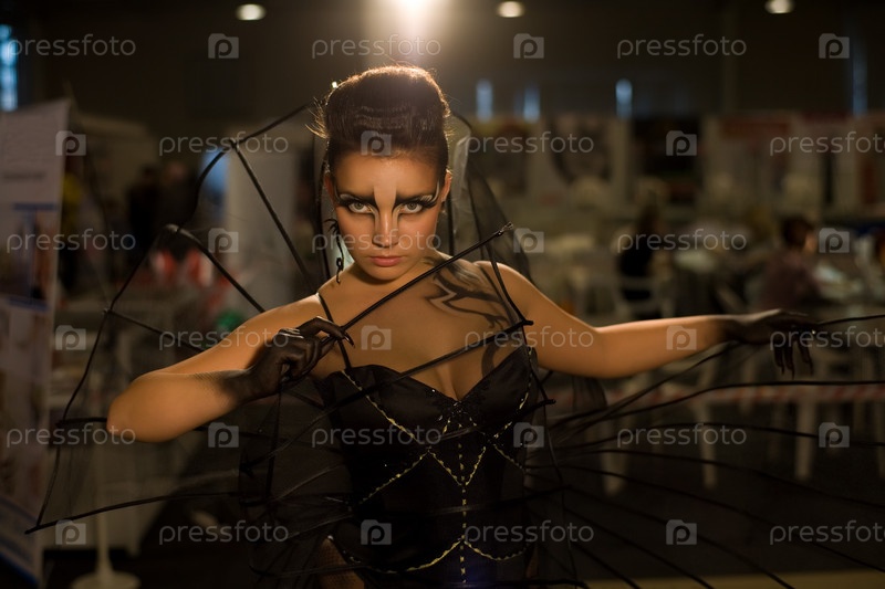 Девушка с ярким макияжем в образе кошки на темном фоне