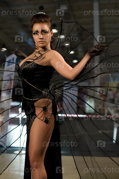 Девушка с ярким макияжем в образе кошки на темном фоне