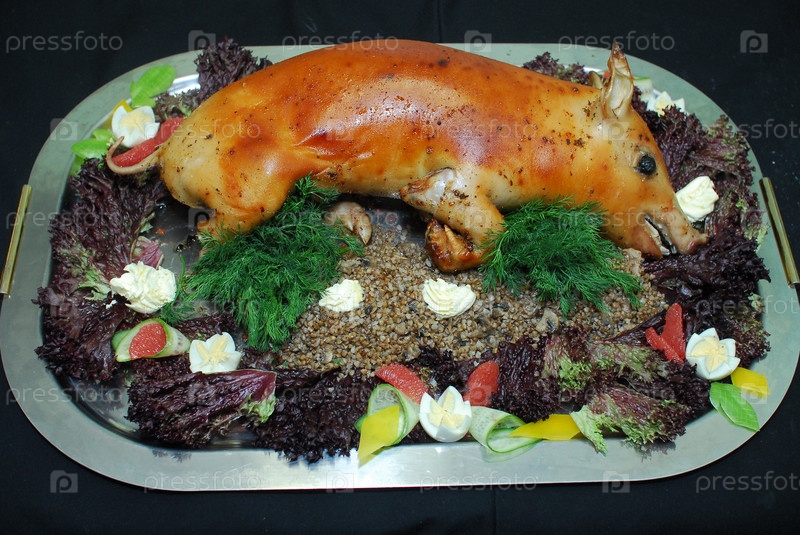 Зажаренный поросенок на блюде