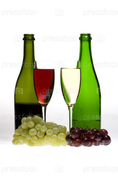 Вино, бокалы и виноград