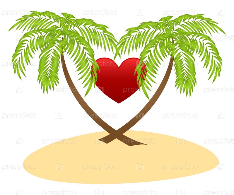 Две пальмы и красное сердце на белом фоне