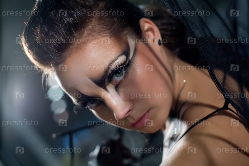 Лицо женщины в образе черного дракона с красивым макияжем