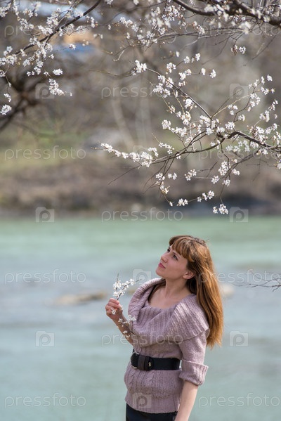 Красивая женщина и цветущее дерево