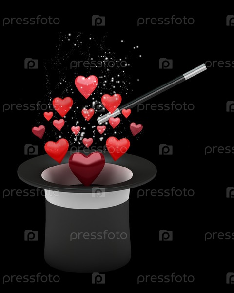Абстрактный фон с изображением шляпы,волшебной палочки и воздушных сердец