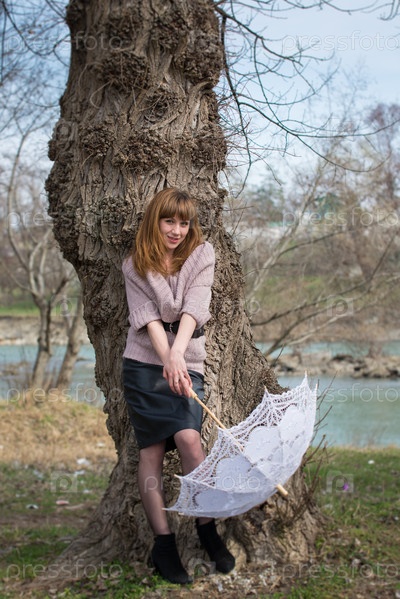 Красивая женщина с летним зонтиком