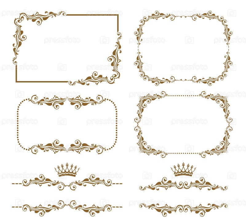 Набор векторных декоративных горизонтальных элементов, границ и рамок. Основные элементы группируются