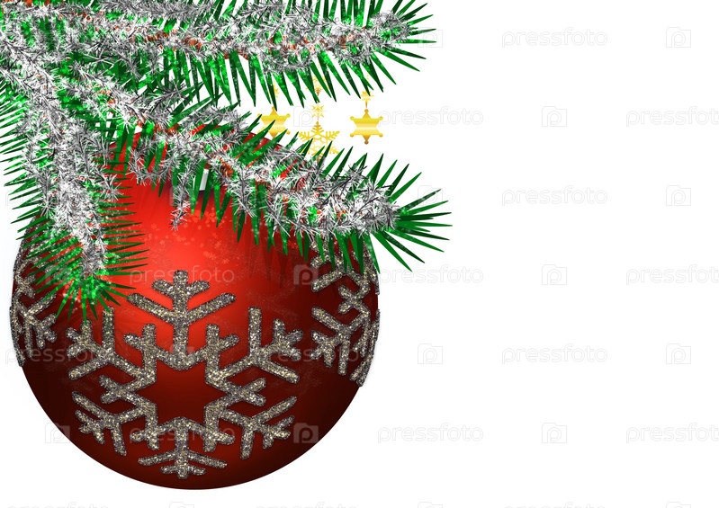 Новогодний шар на ветке, изолирован на белом фоне