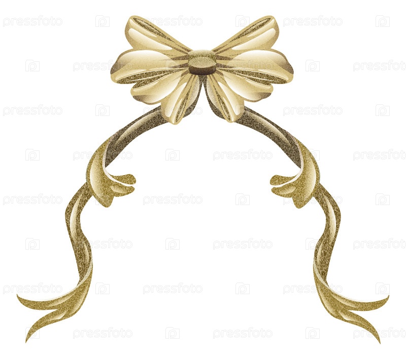 Золотистый бант, изолирован на белом фоне