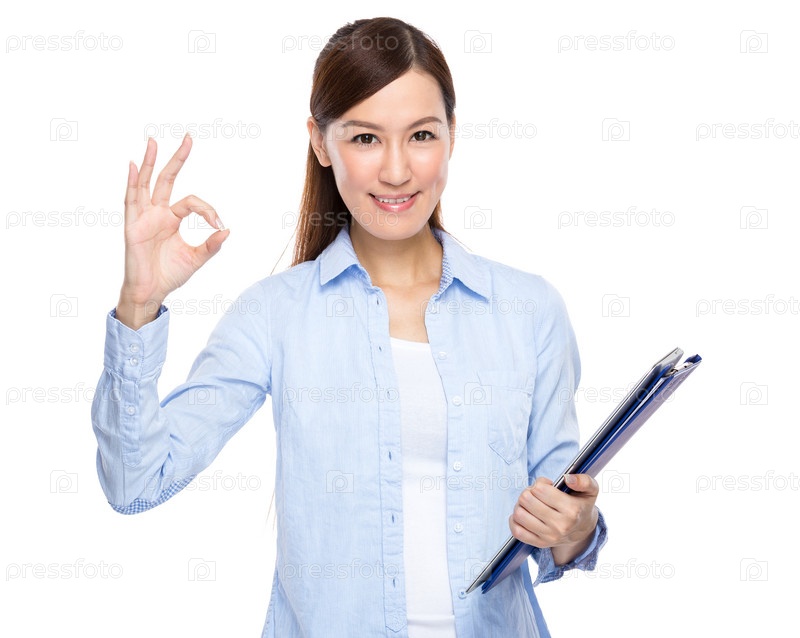 Молодая красивая женщина с планшеткой