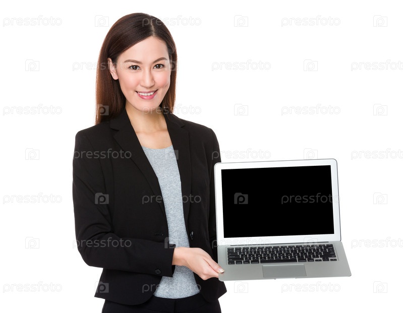 Бизнес-леди показывает ноутбук