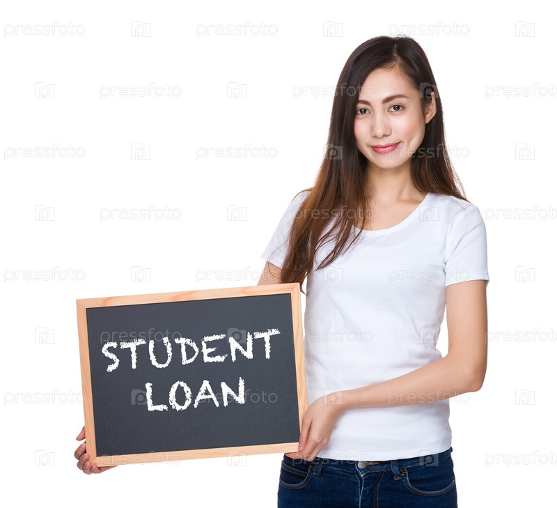 Студентка показывает табличку