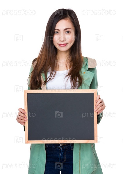 Студентка показывает табличку