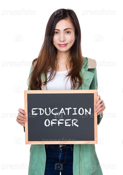 Студентка показывает табличку