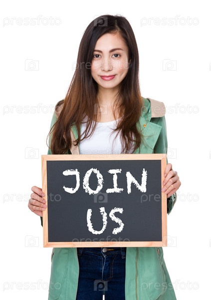 Студентка показывает табличку