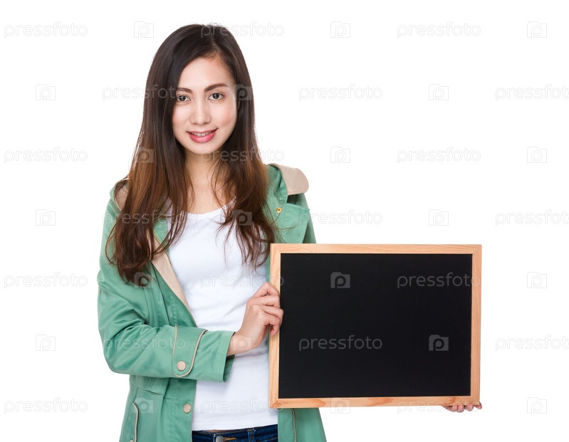 Студентка показывает табличку