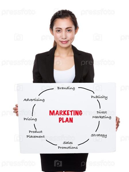 Красивая деловая женщина показывает плакат