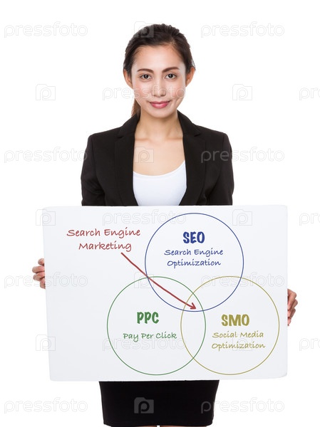 Красивая деловая женщина показывает плакат