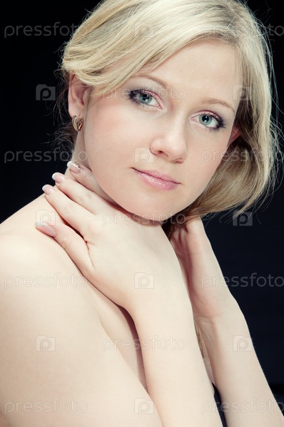 Элегантная белокурая женщина на темном фоне