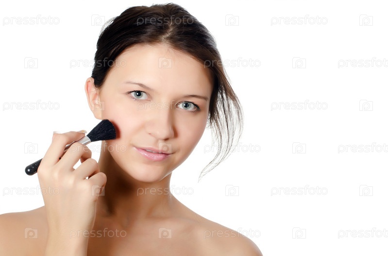 Молодая красивая девушка с кисточкой для макияжа