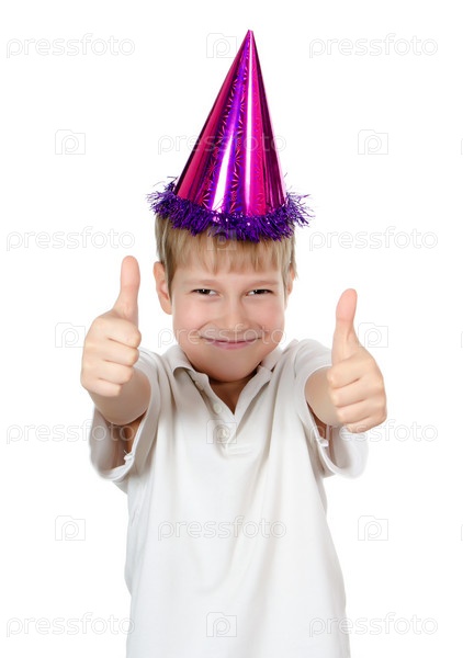 Мальчик в карнавальной шапке, изолированно на белом