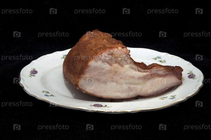 Копченое мясо на тарелке на черном фоне