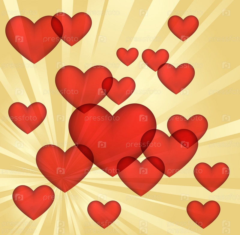 Векторные сердечки на золотом фоне