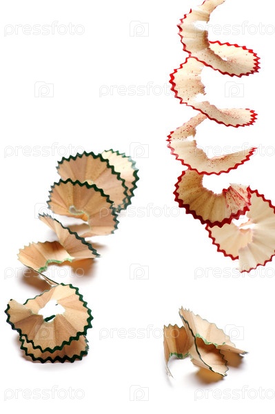 Стружка от цветных карандашей на белом фоне