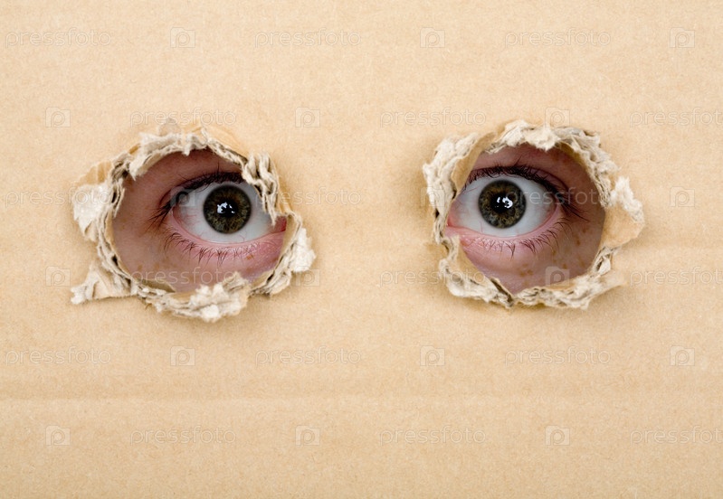 Глаза, заглядывающие сквозь отверстия в картон