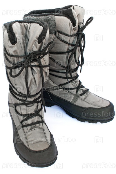 Зимние серые сапоги со шнуровкой, изолированные на белом фоне