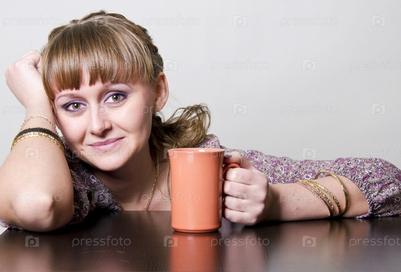 Девушка держит чашку