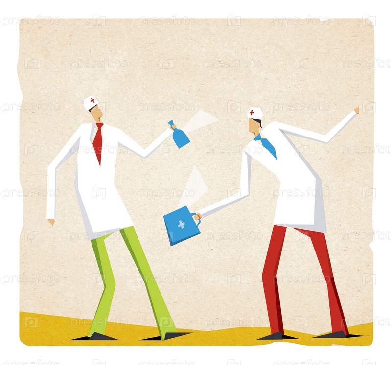 Иллюстрация врачей с медицинскими инструментами на бежевом фоне