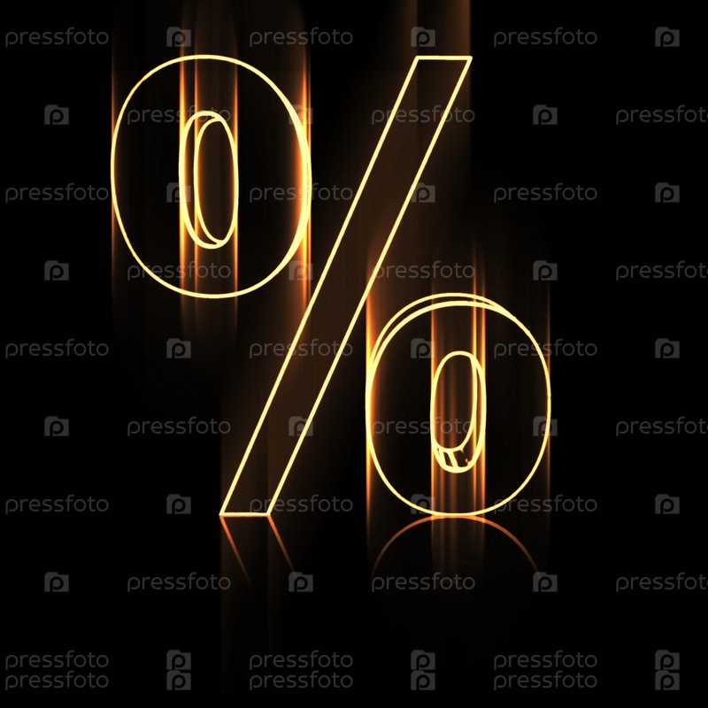 Знак процента в огне, изолированный на черном фоне