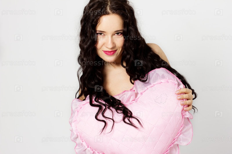 Красивая молодая брюнетка с розовыми сердцем