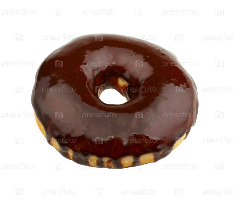 Кольцо политое шоколадом на белом фоне