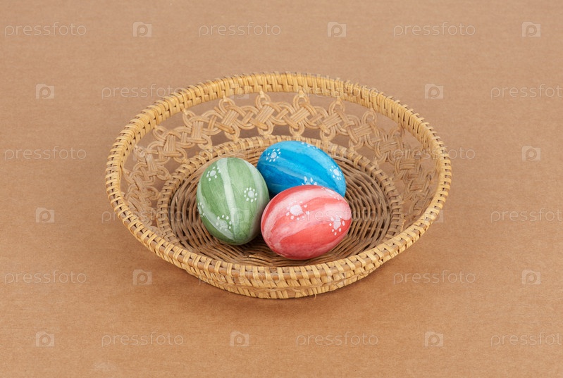 Раскрашенные пасхальные яйца в плетеной корзинке