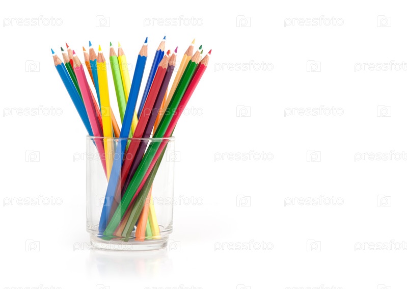 Цветные карандаши в стакане на белом фоне