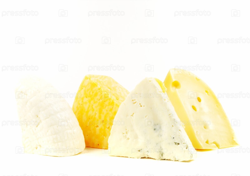 Различные сорта сыра на белом фоне