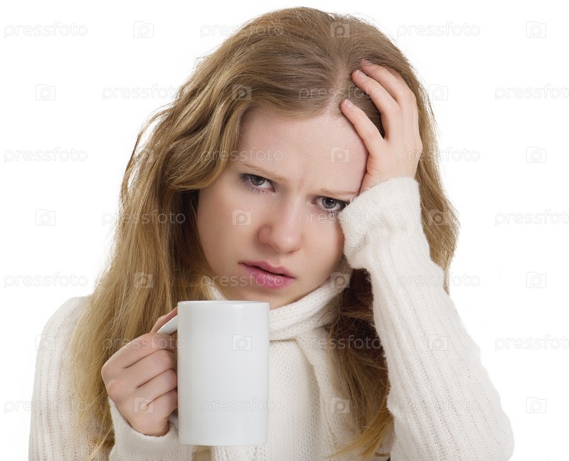 Болеющая молодая девушка на белом фоне