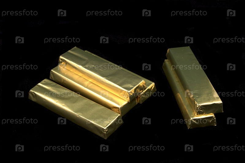 Шоколадные батончики в виде слитков золота,на черном фоне