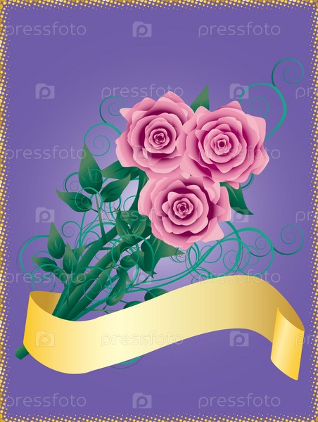 Розовые розы и желтая лента