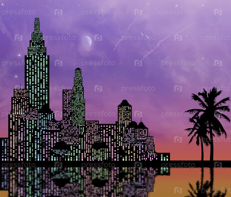 Небоскребы и пальмы на фоне вечернего неба