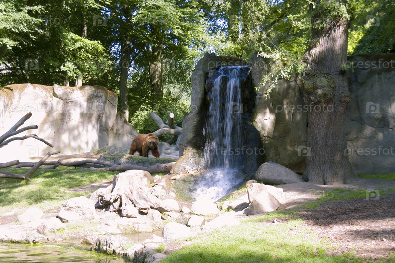 Бурый медведь у водопада