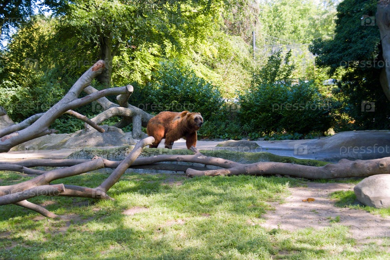 Бурый медведь возле поваленных деревьев