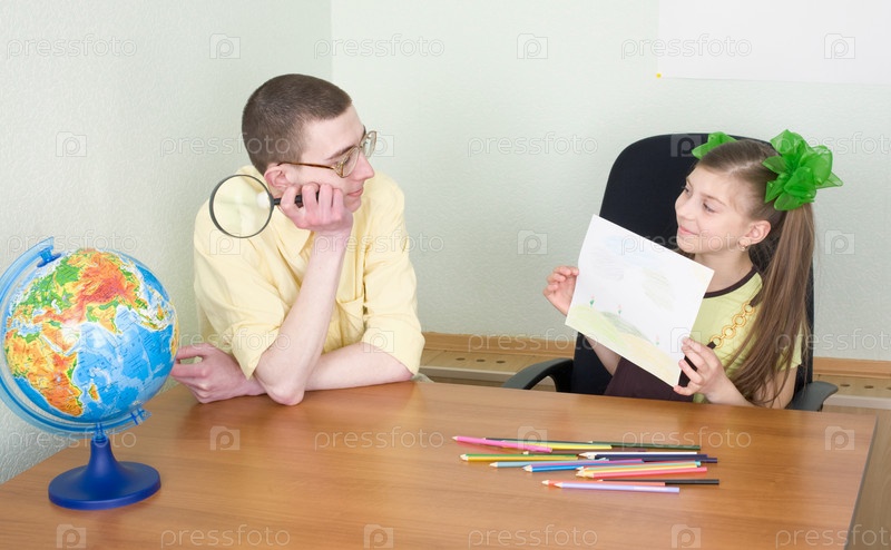 Девушка показывает брату новый рисунок